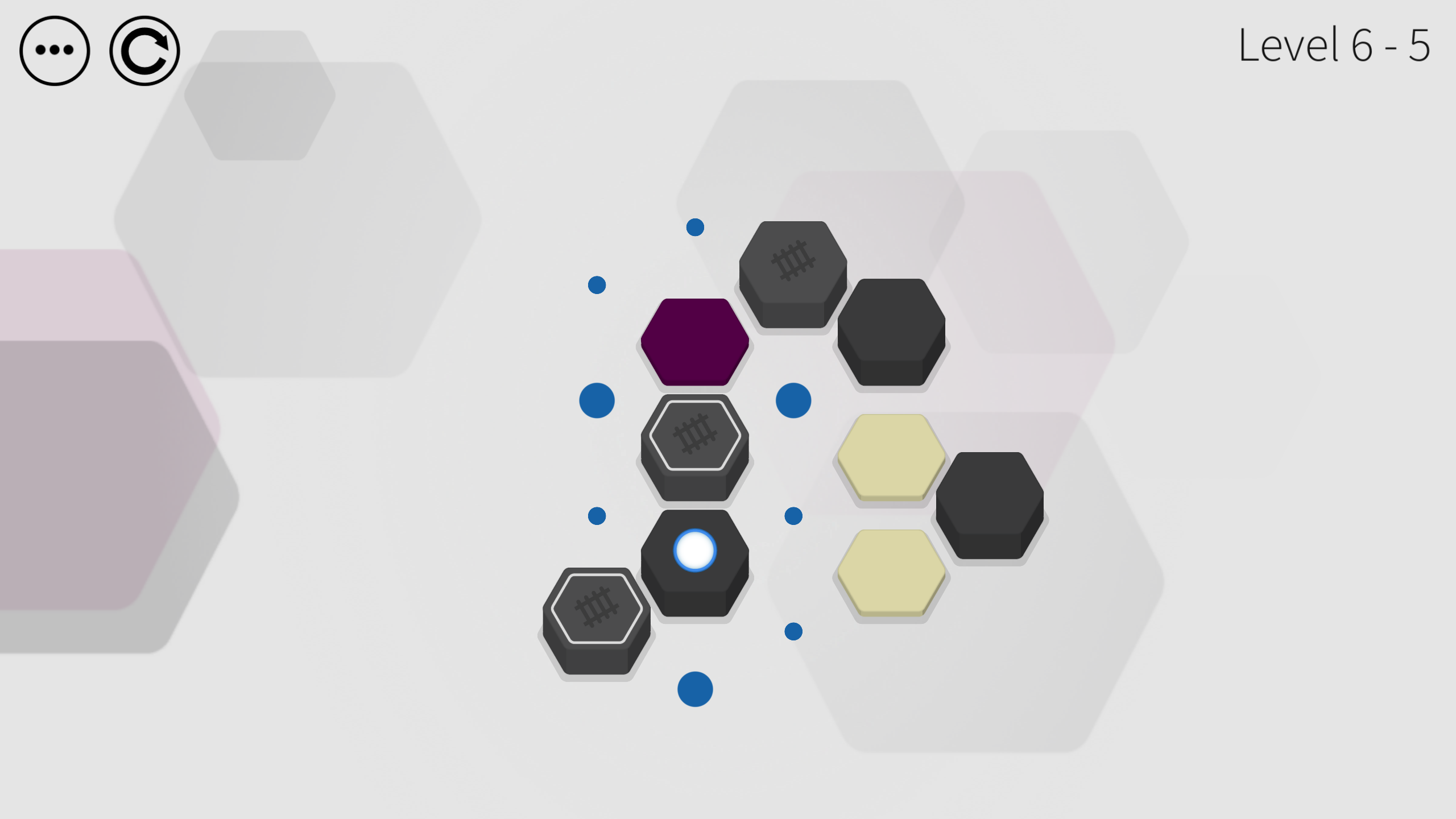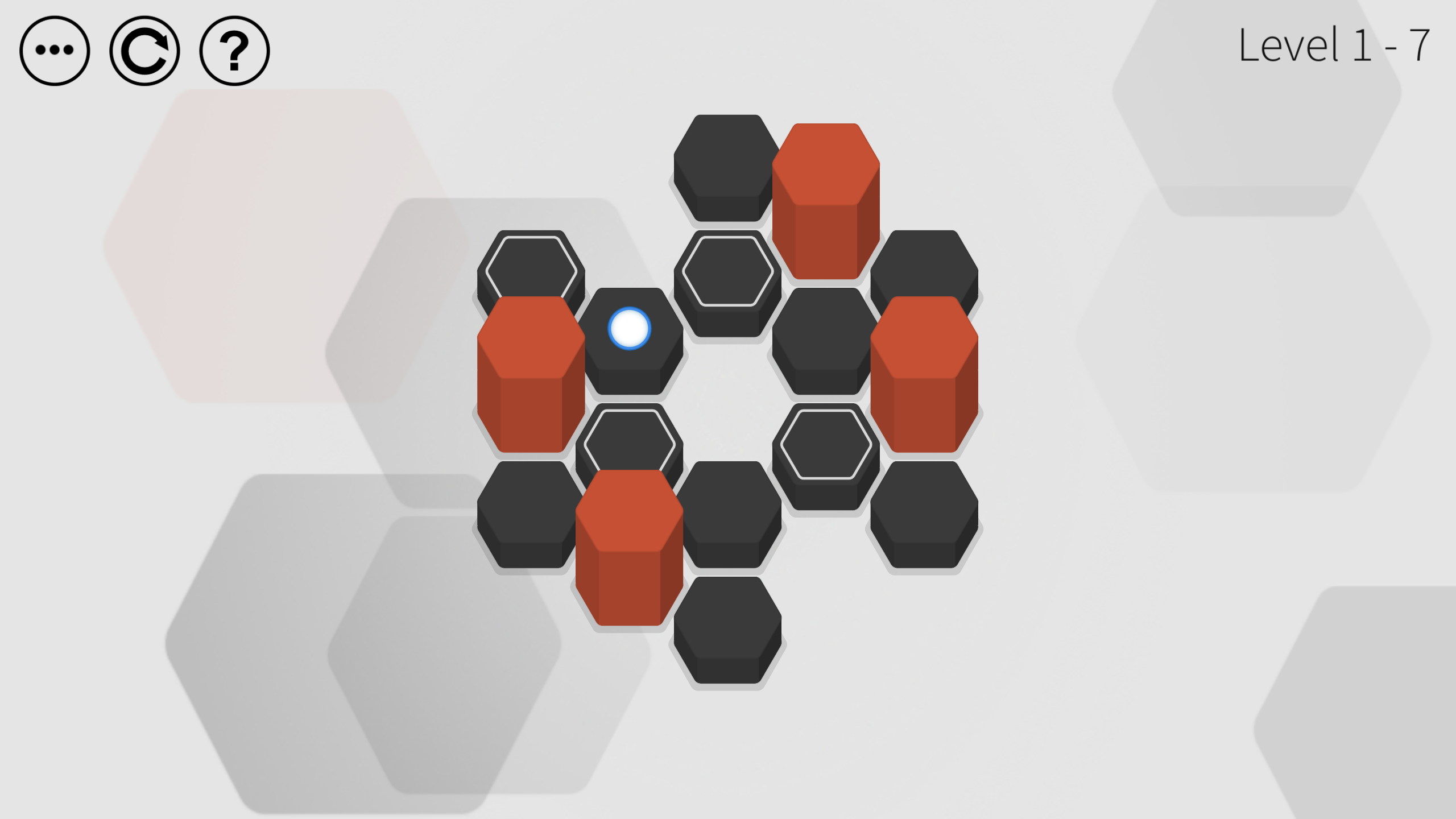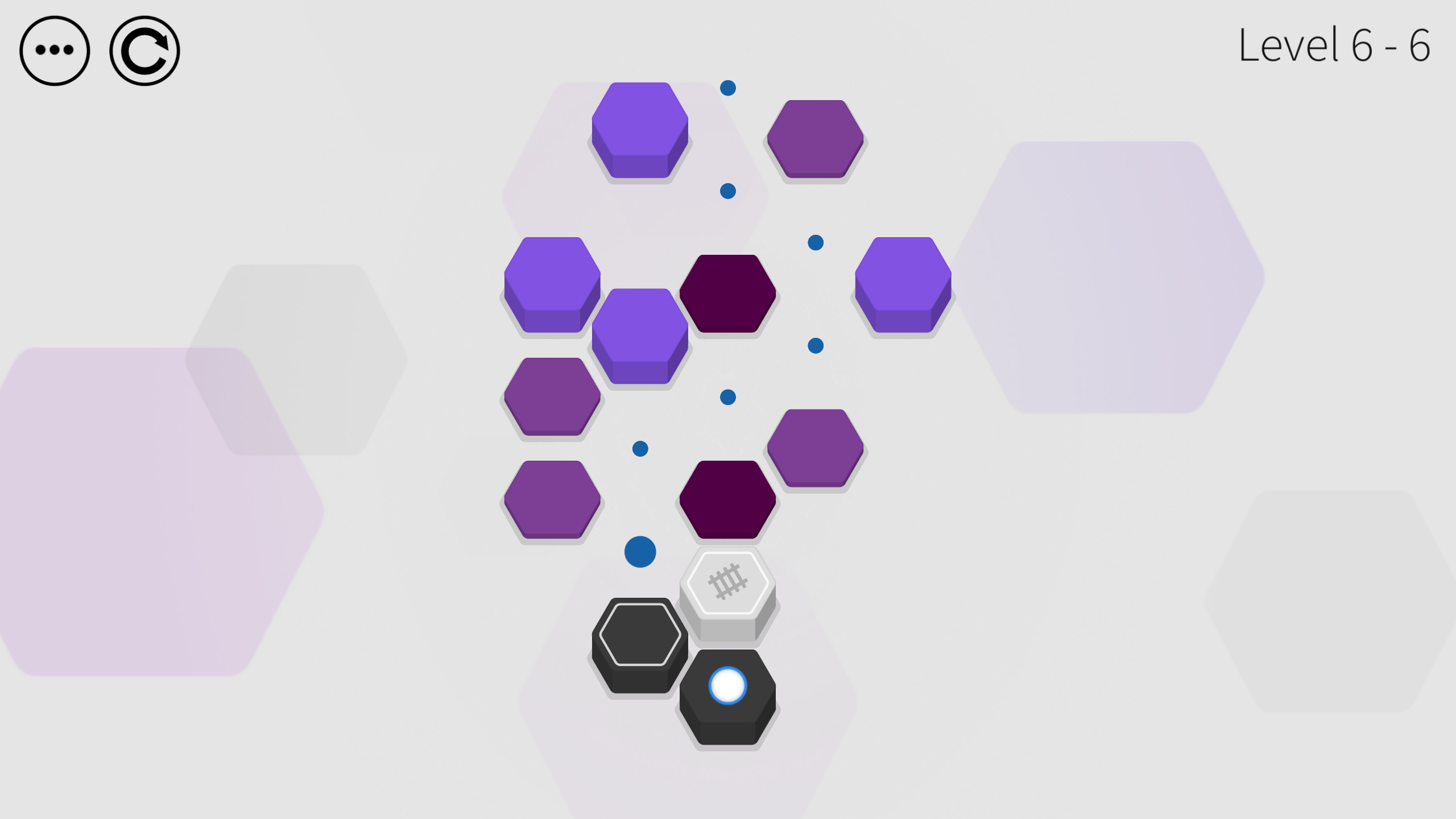 Journey through 80 levels in this beautiful minimalist puzzle game. Jump from tile to tile as you attempt to clear the board. Clear a tile by jumping on it, but it's up to you to determine the order in which to do so. Jump either one or two spaces in any of the six hexagonal directions. In Hex Two, you'll encounter 19 different types of tiles, each of which changing the way you must approach each level. Can you clear them all?