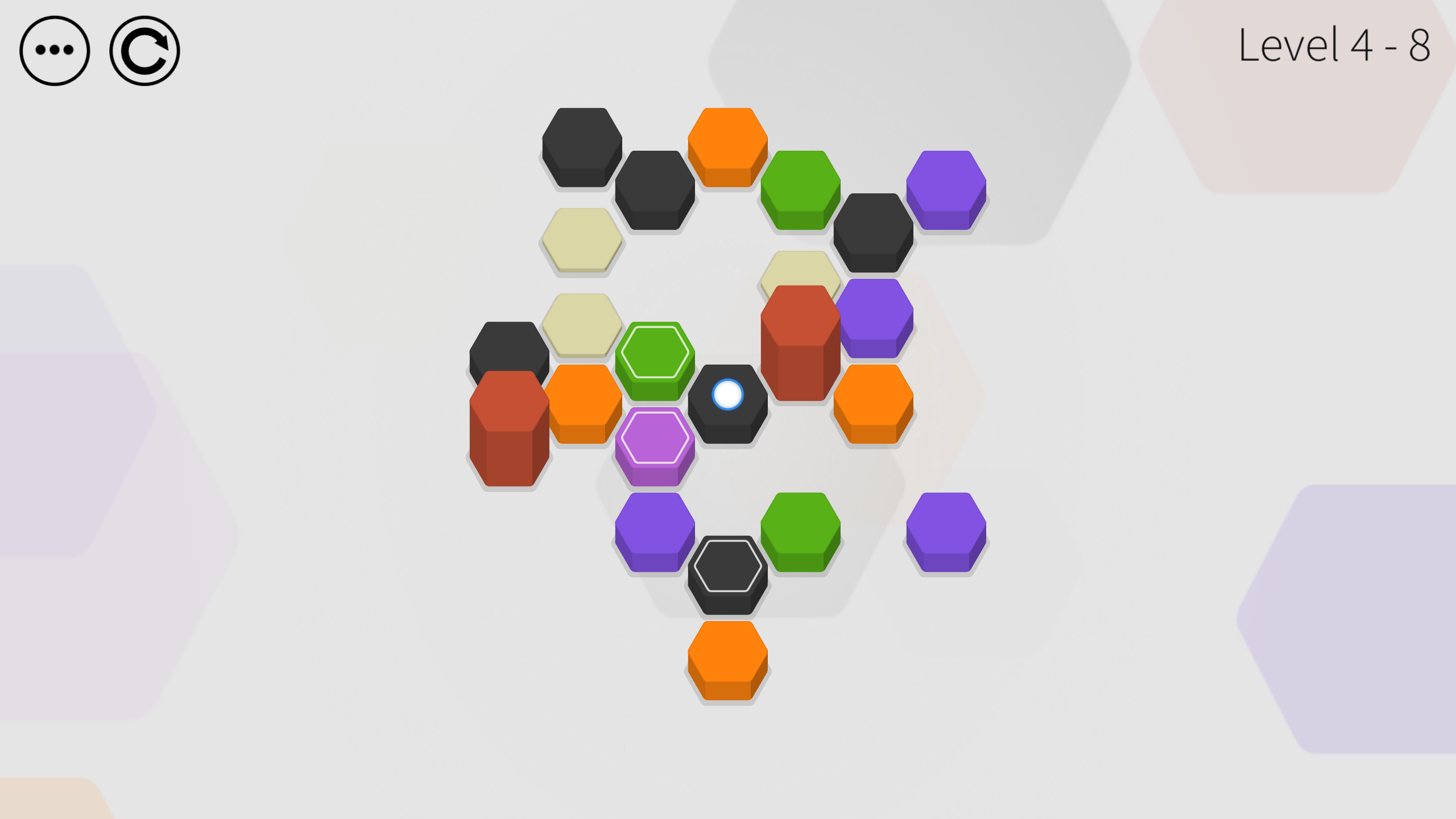 Hex Two features 8 exciting new tiles in addition to your favorites from the original. Step on a gold tile to jump on any tile within range, even on walls! Launch yourself up to three spaces away with the catapult tile. Activate the magenta tile by clearing all of its neighbors. A new soundtrack will immerse you in the puzzle experience as you discover even more new and unique tiles.